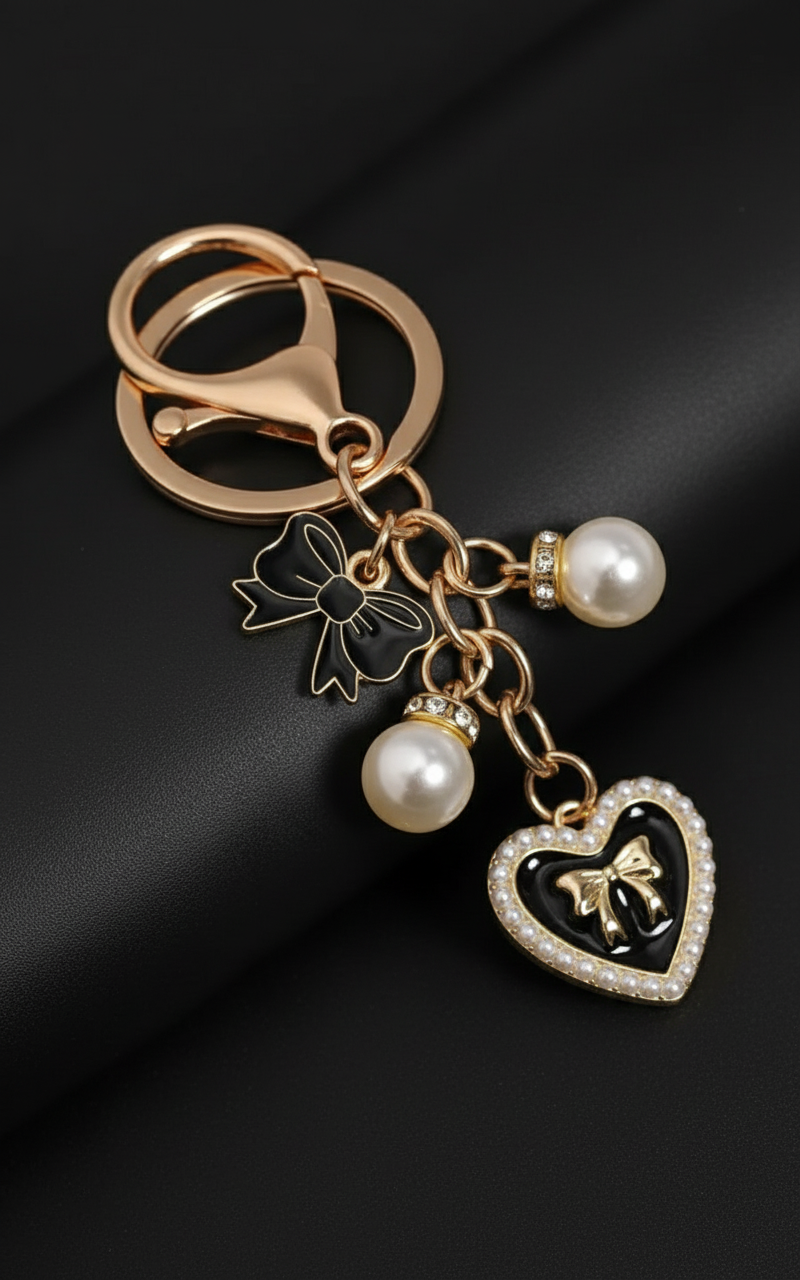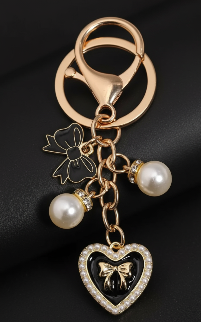 2 Pearl Black Heart Charm (Gld)